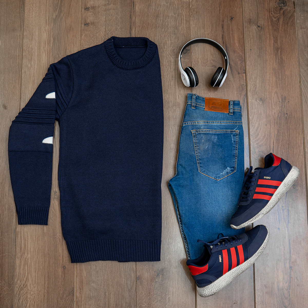 پلیور زاپ دار مردانه سرمه ای مدل solan