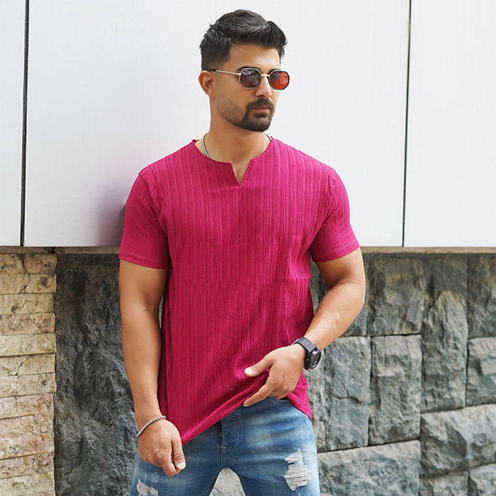 تیشرت مردانه زرشکی آستین کوتاه مدل Bardia