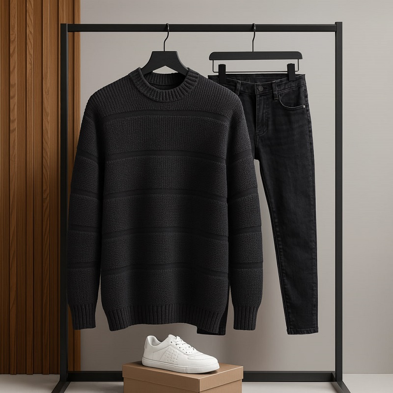 پلیور بافت مردانه یقه گرد مدل Arman-مشکی